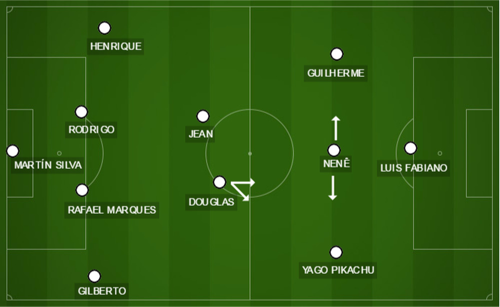 O time cruz-maltino, aliás, vem tendo dificuldade para construir lances ofensivos. Este é um problema ainda dos tempos de Cristóvão Borges, quando a equipe apresentava lentidão. Milton mudou o jeito de jogar, na tentativa de solucionar: em vez de construir jogadas do início, busca aproveitar erros do adversário para atacar em velocidade.