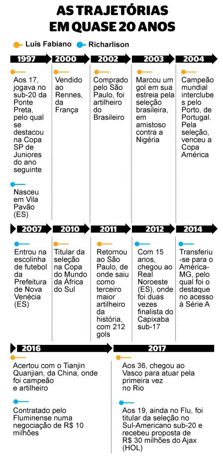 O primeiro finalista do Estadual só será conhecido ao fim do duelo entre Fluminense e Vasco, hoje, às 19h, no Maracanã. Mas já se sabe que os goleiros não terão uma noite fácil. Afinal, a partida marcará um confronto particular entre Richarlison e Luís Fabiano, representantes de duas gerações distintas e ligados pelo faro de gol.