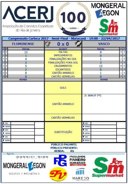 Acerj @acerjrio Scout do 1º Tempo de Fluminense e Vasco pela Semi-Final do Campeonato Carioca 2017