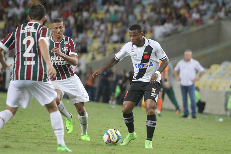 O Flu pressionava o Vasco, e aos dez Wellington Silva escapou pela esquerda, entrou na área e cai numa dividida com Douglas. A bola sobrou do outro lado para Sornoza, que arriscou de fora da área e obrigou o goleiro do Vasco a trabalhar mais uma vez.