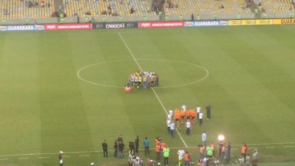 Felipe Siqueira @felipe_siqueira Após eliminação, Milton reúne jogadores do Vasco no círculo central #trmaraca