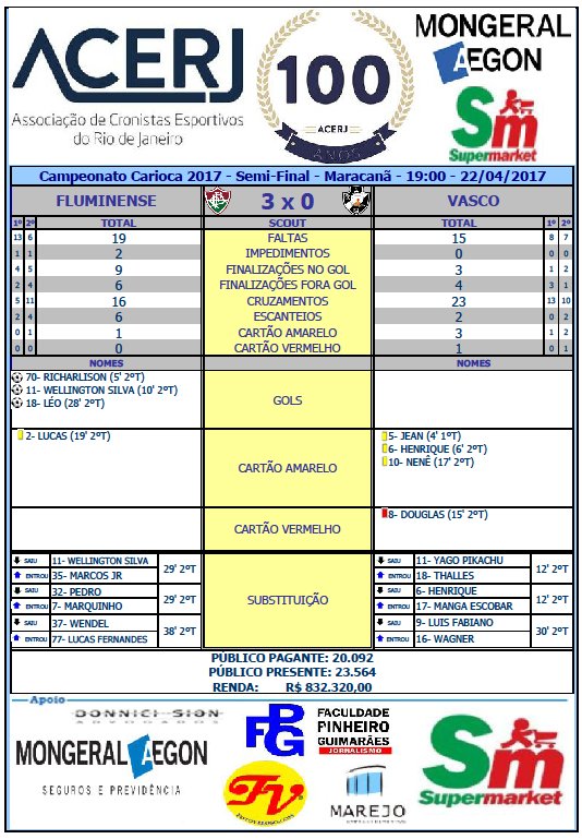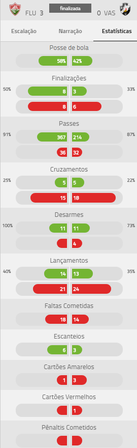 Confira estatísticas de Fluminense 3 x 0 Vasco