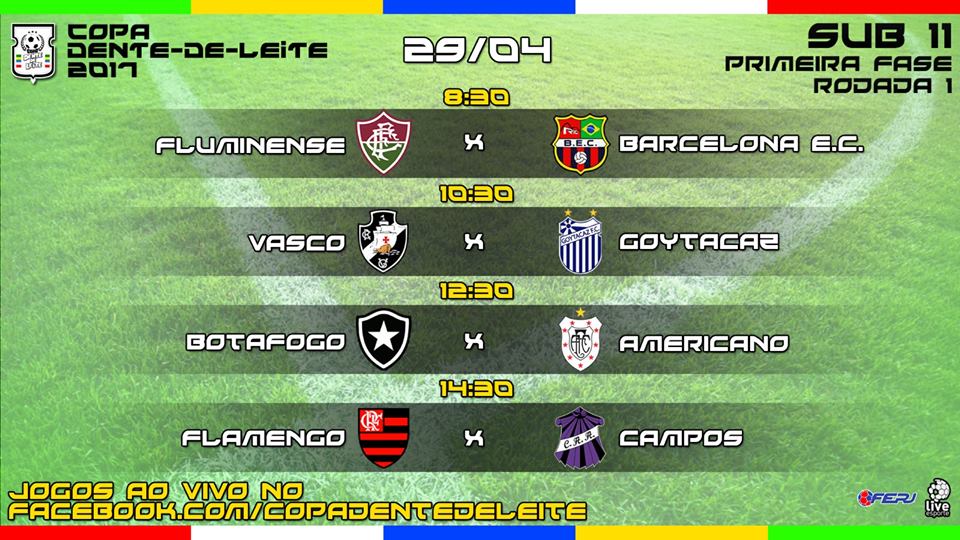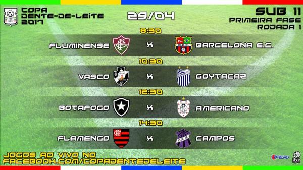 Vasco e Goytacaz se enfrentam a partir das 10h30 deste sábado pela Copa Dente-de-Leite Sub-11. Assista ao vivo, em vídeo, por meio do Facebook oficial da competição, clicando aqui ou no player abaixo.