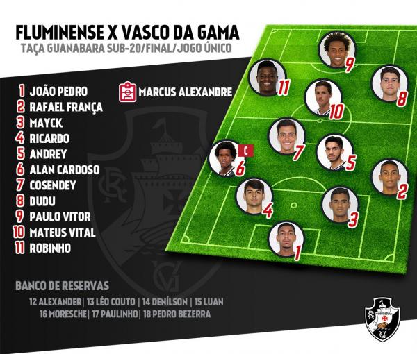Vasco da Gama @vascodagama Escalação oficial da equipe sub-20 para o duelo decisivo contra o Fluminense. #FLUxVAS