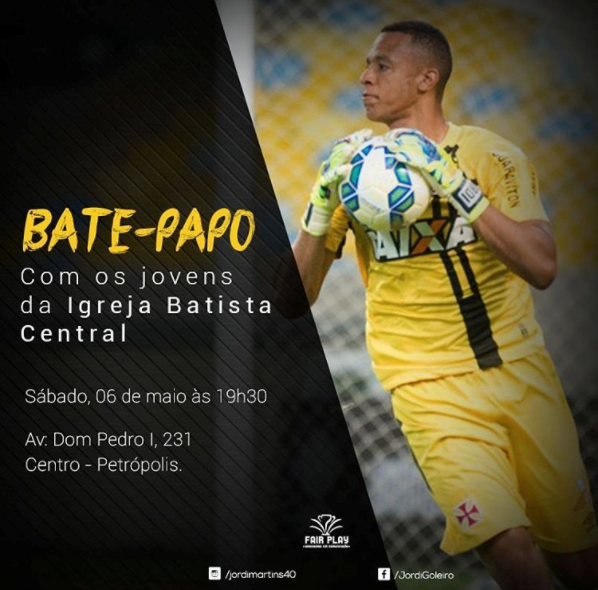 Fala rapaziada. Neste sábado estarei com a minha namorada @gabrielagomesbr , trocando ideias com a galera jovem da Igreja Batista Central de Petrópolis e contando um pouquinho da minha experiência no futebol. Aguardo vocês!