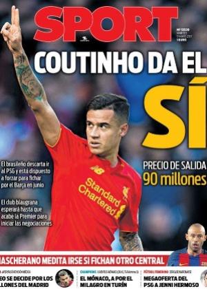 O jornal espanhol Sport divulgou sua capa desta terça-feira (9), que traz como principal manchete o "sim" do meia Philippe Coutinho a uma proposta do Barcelona. De acordo com a publicação, o brasileiro estaria disposto a forçar sua saída do Liverpool para atuar pelo time catalão.