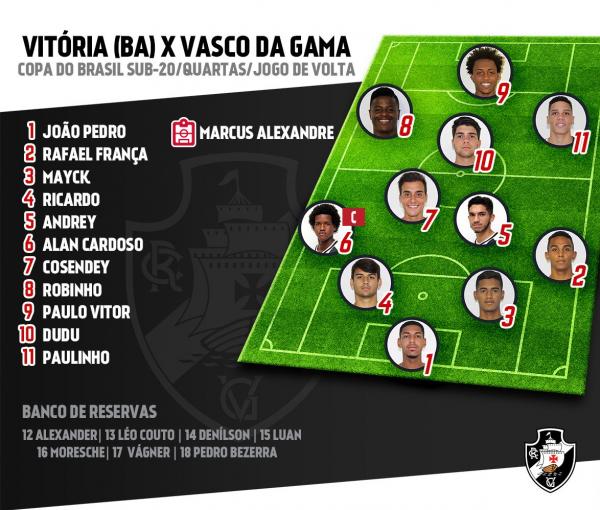Escalação oficial do Vasco da Gama! #VITxVAS #CopaDoBrasilSub20