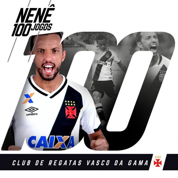Hoje, @Nene10 completa 100 jogos com a camisa do Vascão. Parabéns pela marca, craque! 👏