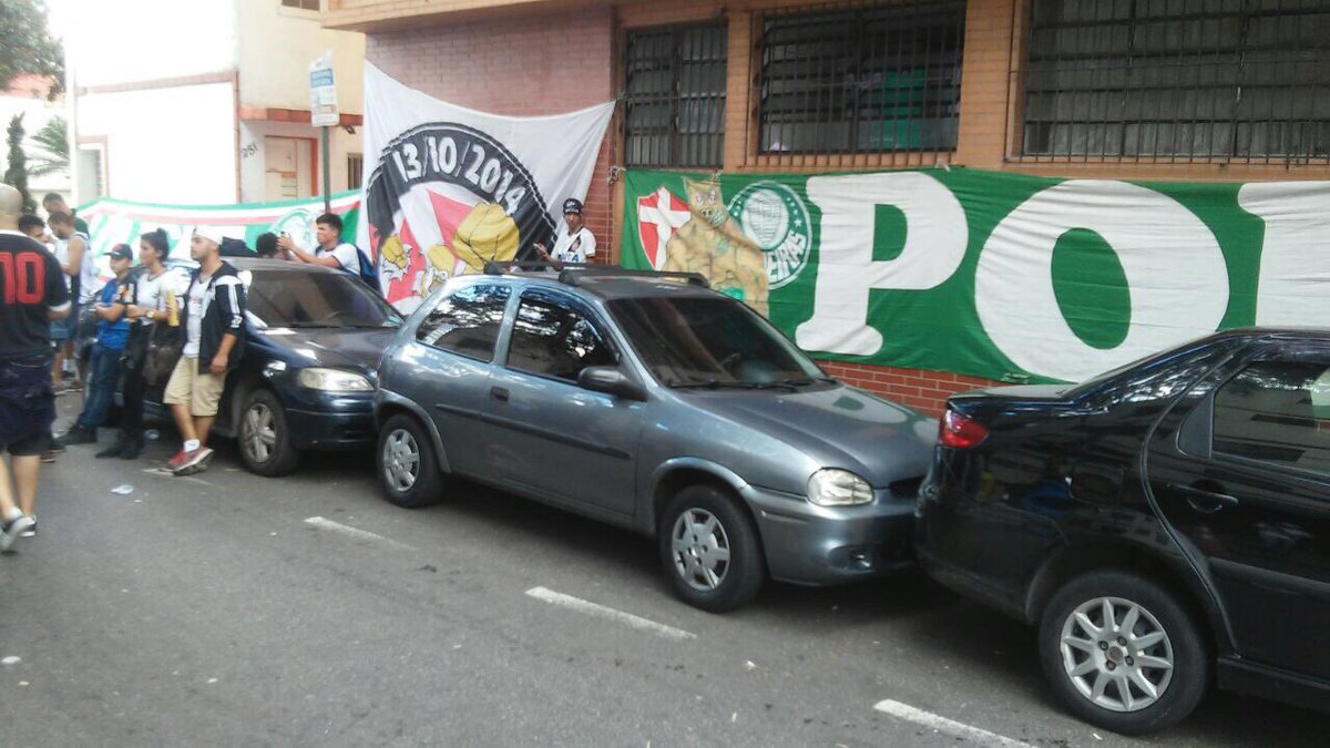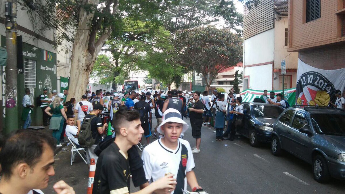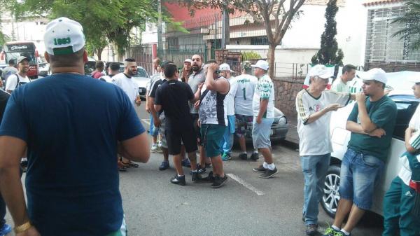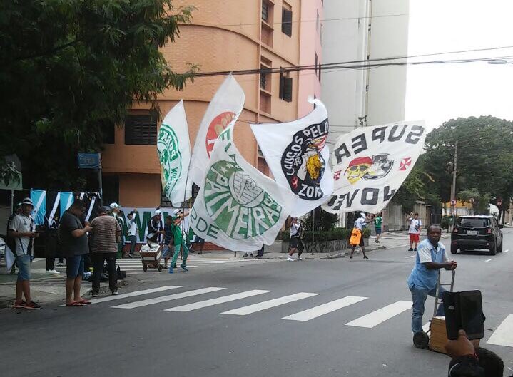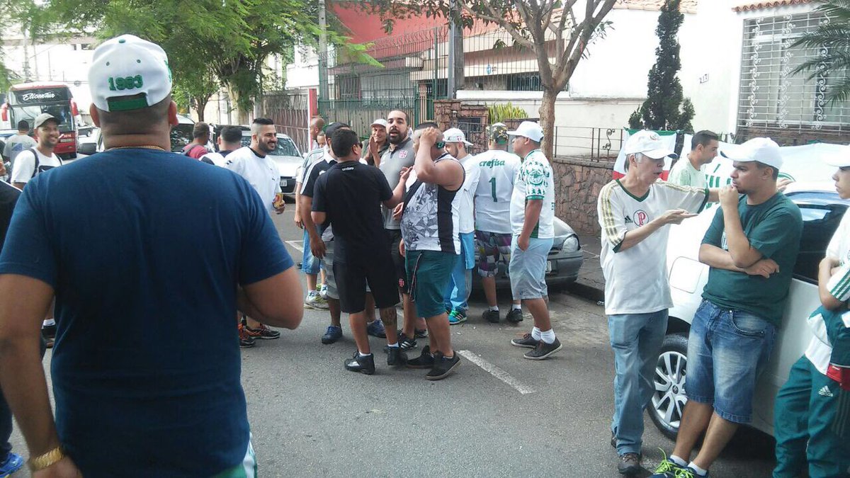 Torcidas de Vasco e Palmeiras confraternizam do lado de fora do Allianz Parque