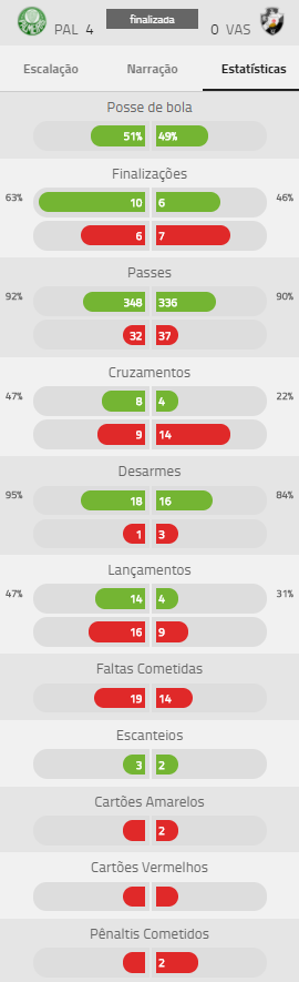 Confira estatísticas de Palmeiras 4 x 0 Vasco