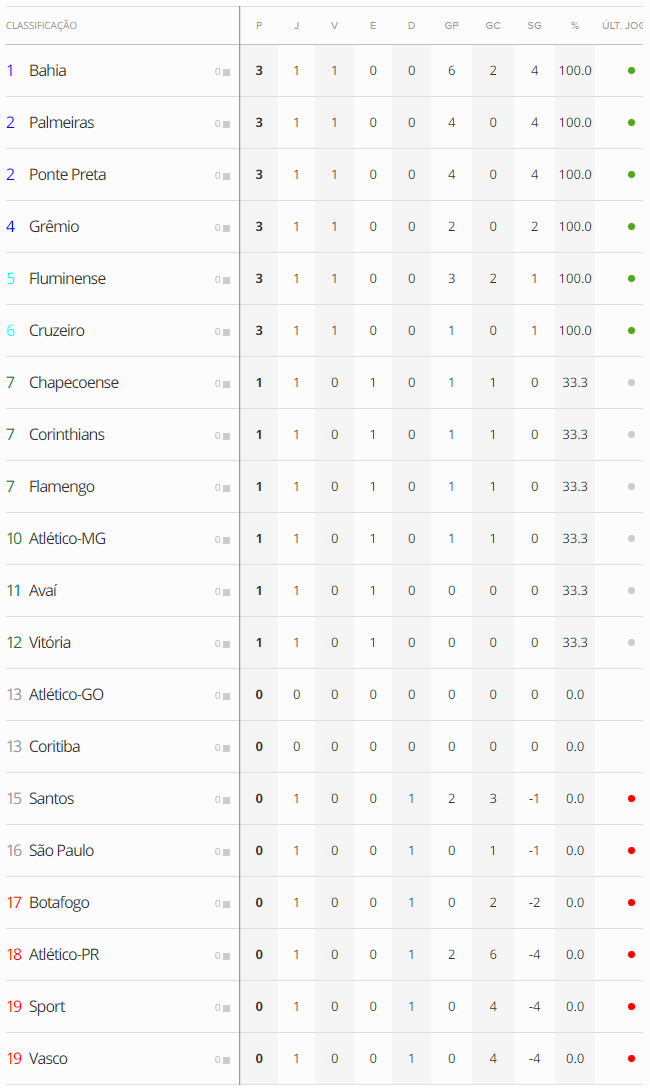 O Vasco terminará a 1ª rodada do Campeonato Brasileiro 2017 na zona do rebaixamento. Faltando 1 jogo para o término da rodada, o Gigante da Colina divide a última colocação com o Sport.