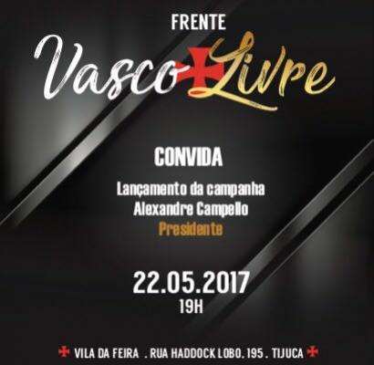 Lançamento da campanha de Alexandre Campello à presidência do Vasco será no dia 22/05 às 19h na Casa Vila da Feira