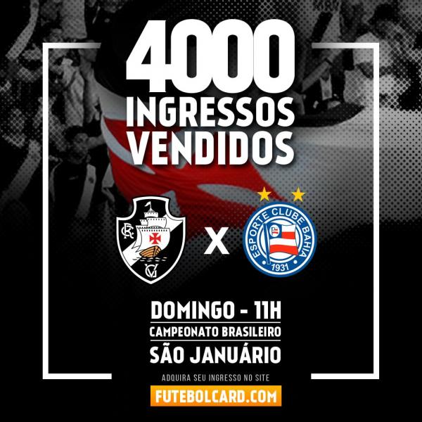 Quatro mil ingressos vendidos para Vasco x Bahia em São Januário. Garanta seu bilhete para domingo: http://www.futebolcard.com .