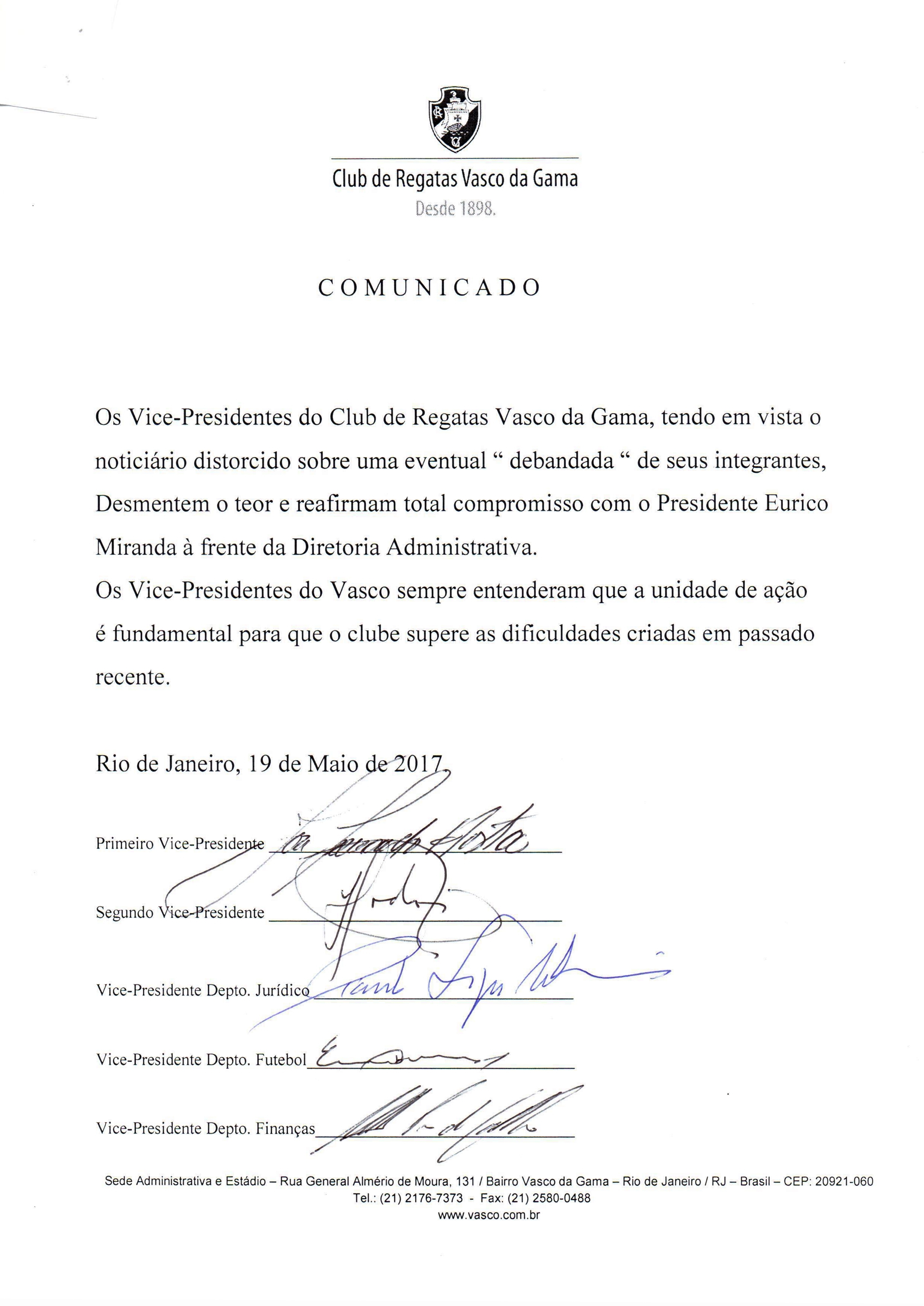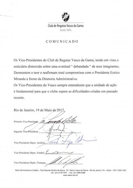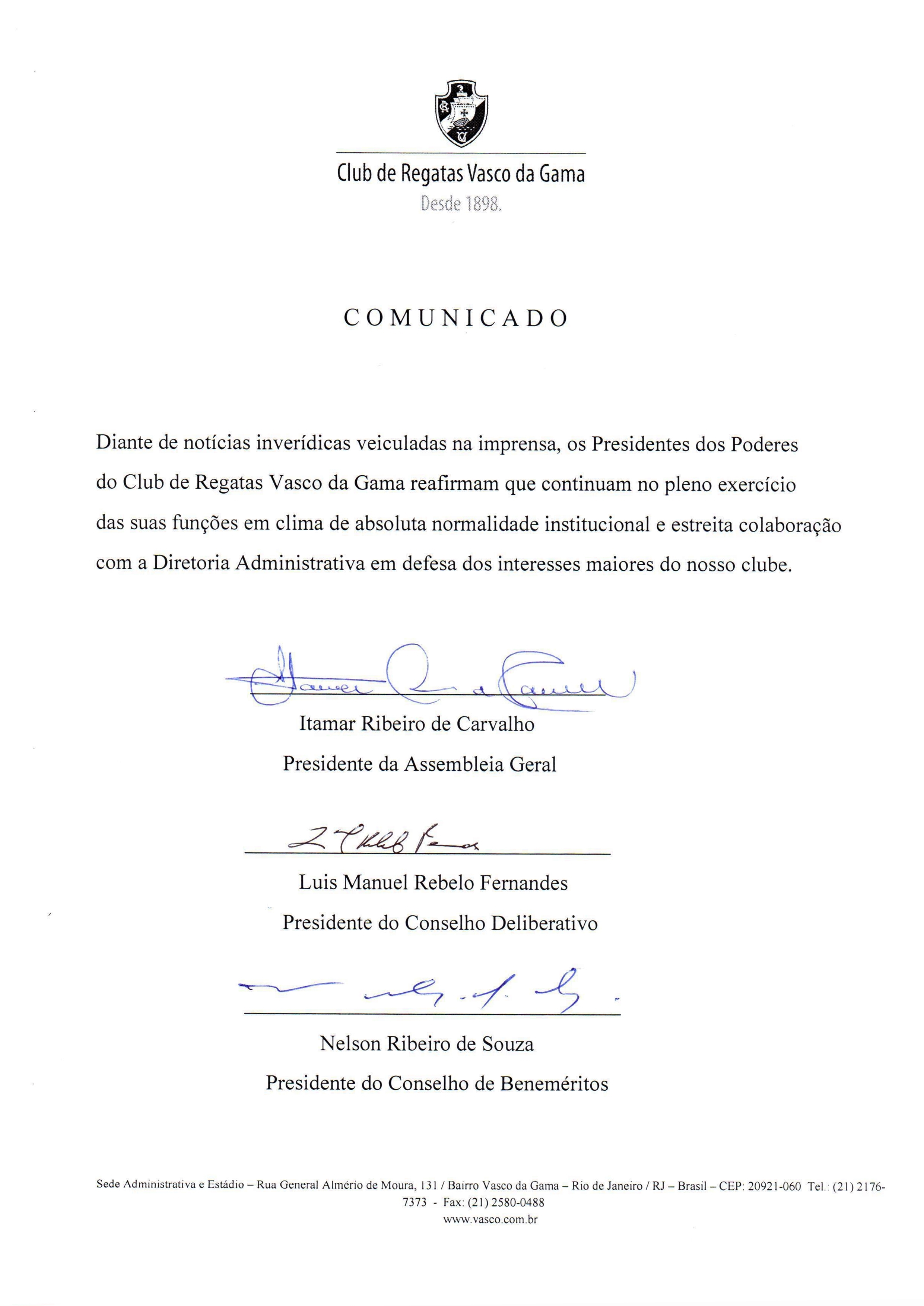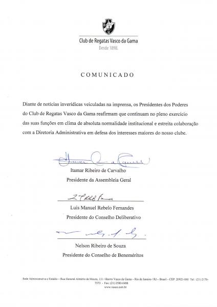 Confira os comunicados dos Presidentes dos Poderes e da Diretoria Administrativa do Vasco.
