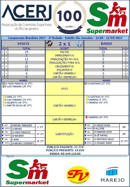 21/05/17 - Vasco x Bahia teve público de 19.030 torcedores, sendo 17.770 presentes