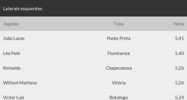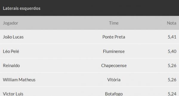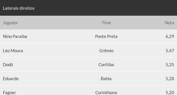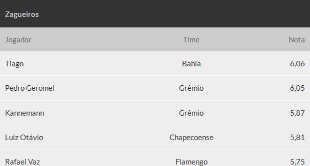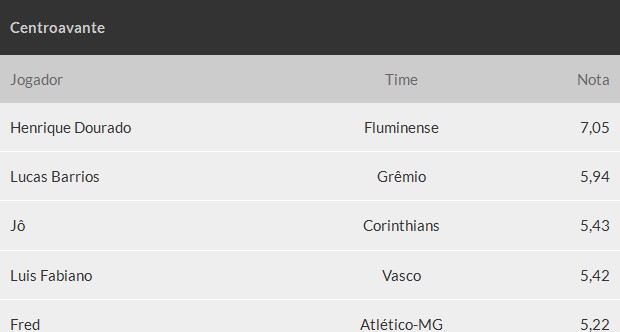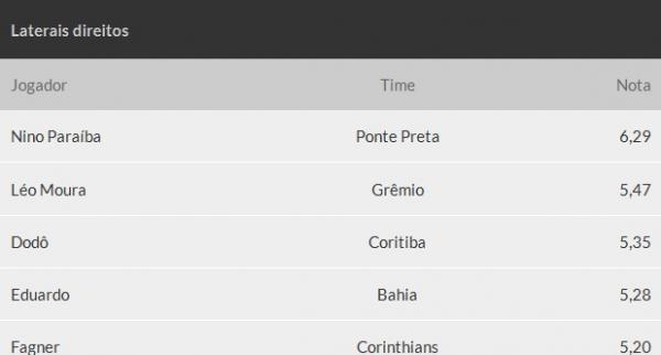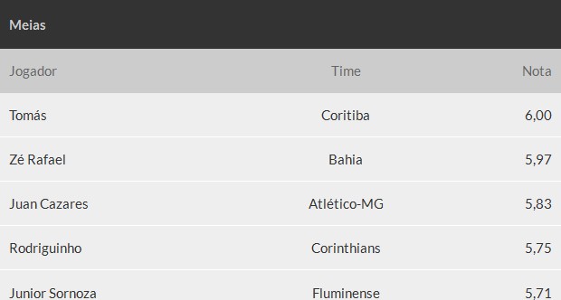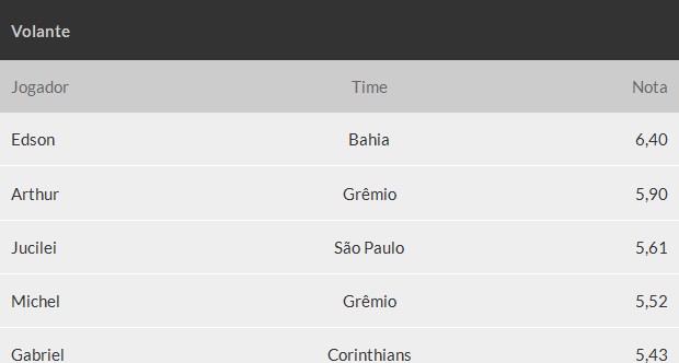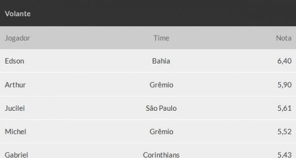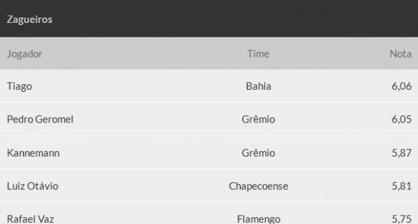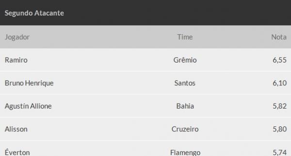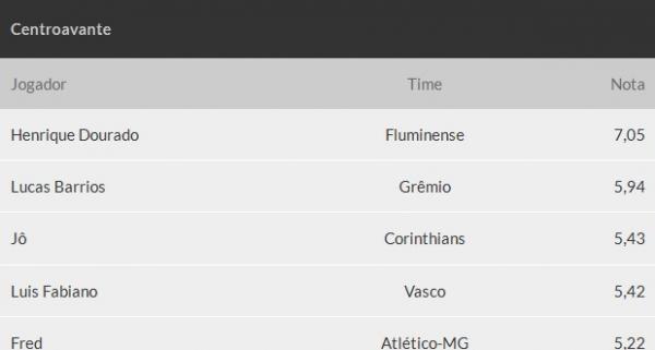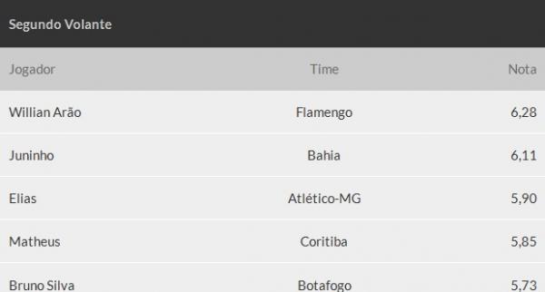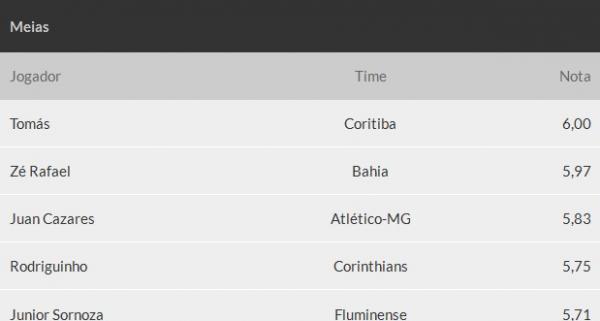 Veja abaixo as notas dos cinco melhores de cada posição após a segunda rodada do Campeonato Brasileiro (apenas jogadores que atuaram nas duas partidas entram):