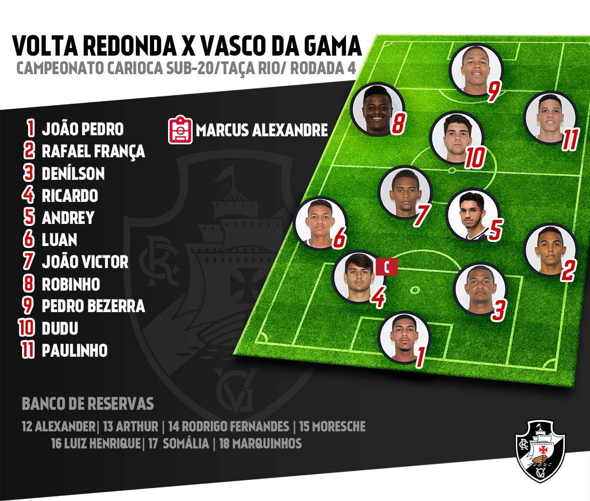 Escalação do Vasco para a partida contra o Volta Redonda, pela Taça Rio sub-20! #CariocaSub20 #VOLxVAS #MeninosDaColina #BaseForte
