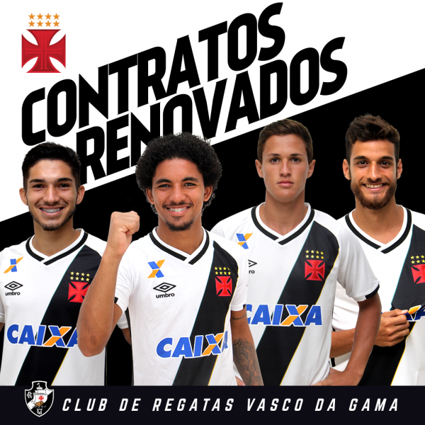 O Vasco da Gama acertou na tarde desta sexta-feira (26/05) a renovação contratual de quatro talentosos jogadores de suas categorias de base. Os volantes Andrey e Douglas e os meio-campistas Guilherme Costa e Mateus Vital ampliaram o vínculo com o Gigante da Colina até a temporada de 2021. Os acordos selados marcam o início do processo de valorização de pratas da casa por parte do Departamento de Futebol.