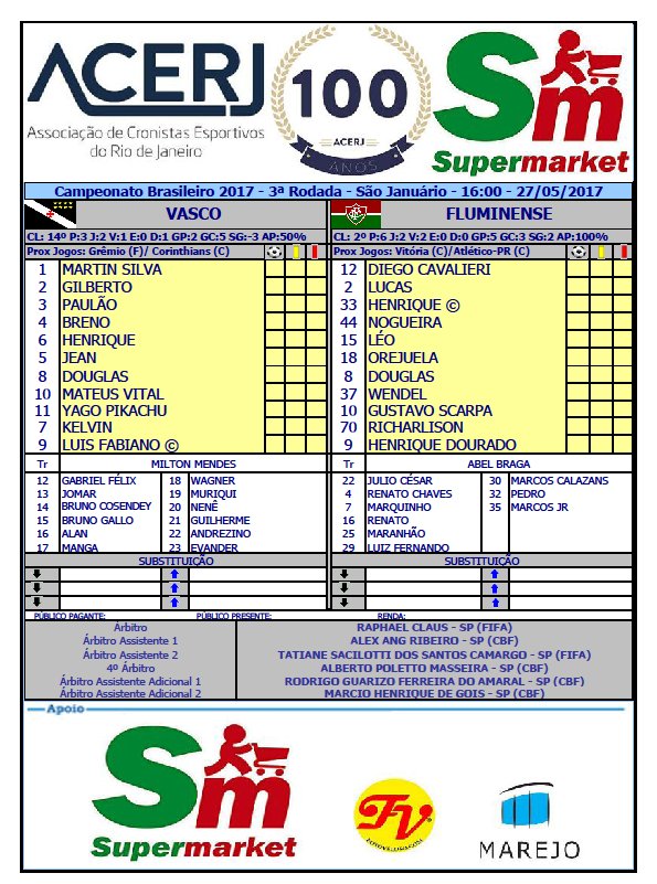 Escalações de @vascodagama e @FluminenseFC em São Januário pela 3ª rodada do Campeonato Brasileiro 2017 #acerjinforma