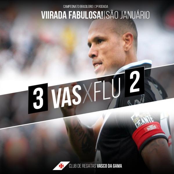 Em rede social, Vasco exalta vitória de virada contra o Fluminense em São Januário