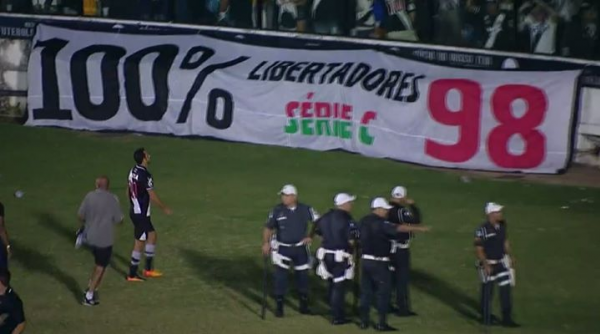 Torcida exibiu faixa lembrando Libertadores do Vasco e Série C do Fluminense