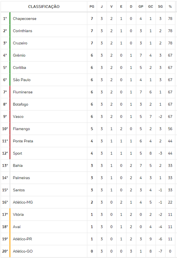 Terminada a 3ª rodada do Brasileiro 2017, o Vasco, que derrotou o Fluminense por 3 a 2, subiu da 14ª para a 9ª posição na tabela.