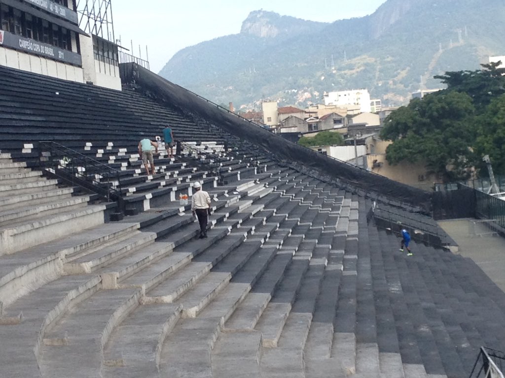 Pintura da arquibancada vem sendo retocada aqui em São Januário. Vasco joga fora neste fim de semana e vai aproveitando a "folga".