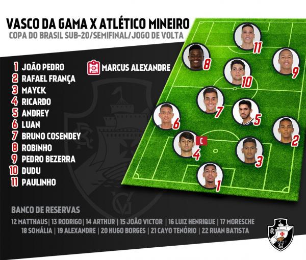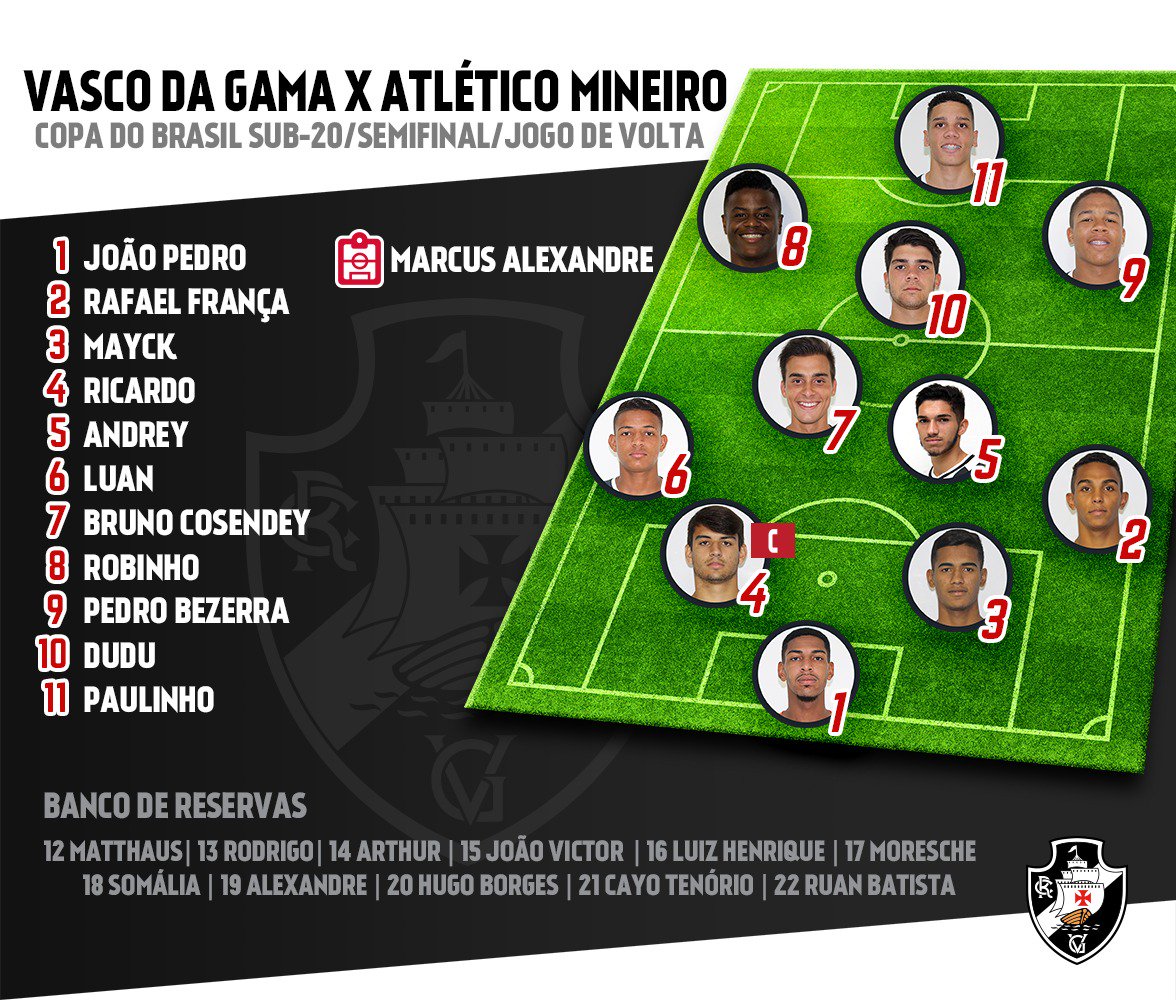 Juniores: Confira escalação do Vasco para o jogo contra o Atlético-MG