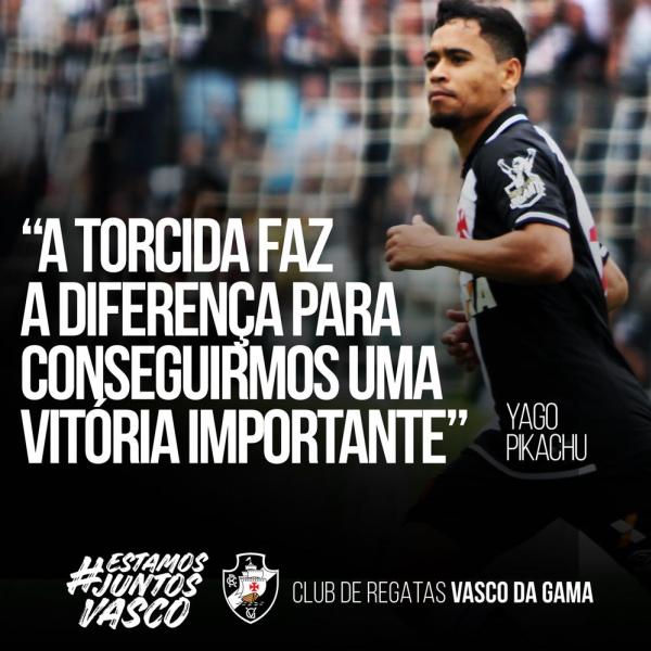 Amanhã é dia de continuarmos a nossa luta. Tem jogo importante contra o Grêmio e contamos com o apoio de vocês sempre! #EstamosJuntosVasco
