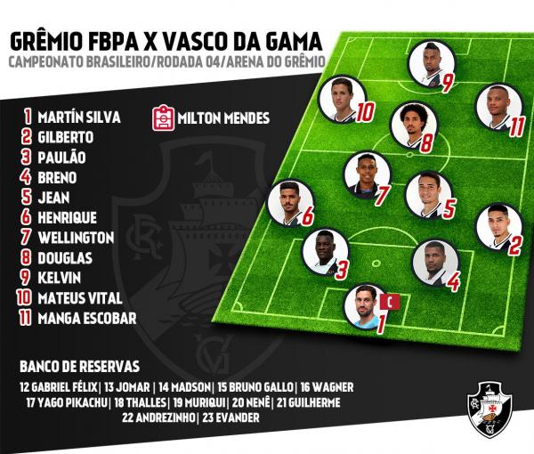 Confira a escalação do Vasco para o jogo contra o Grêmio; Wellington estreia e Manga Escobar é titular