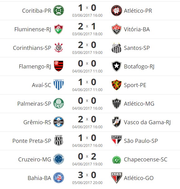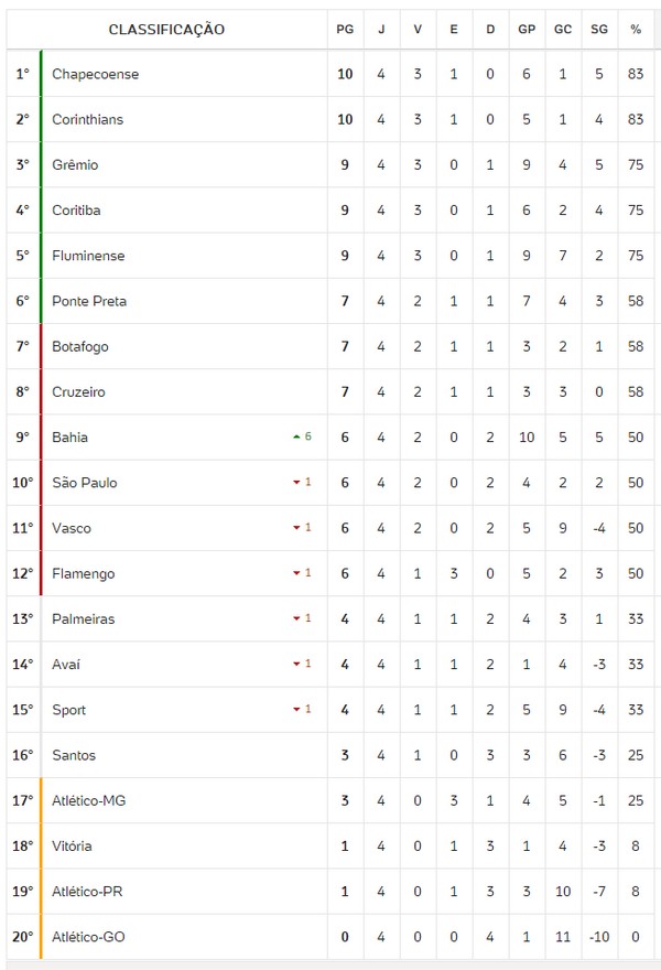 Terminada a 4ª rodada do Brasileiro 2017, o Vasco, que foi derrotado pelo Grêmio por 2 a 0, caiu da 9ª para a 11ª posição na tabela.