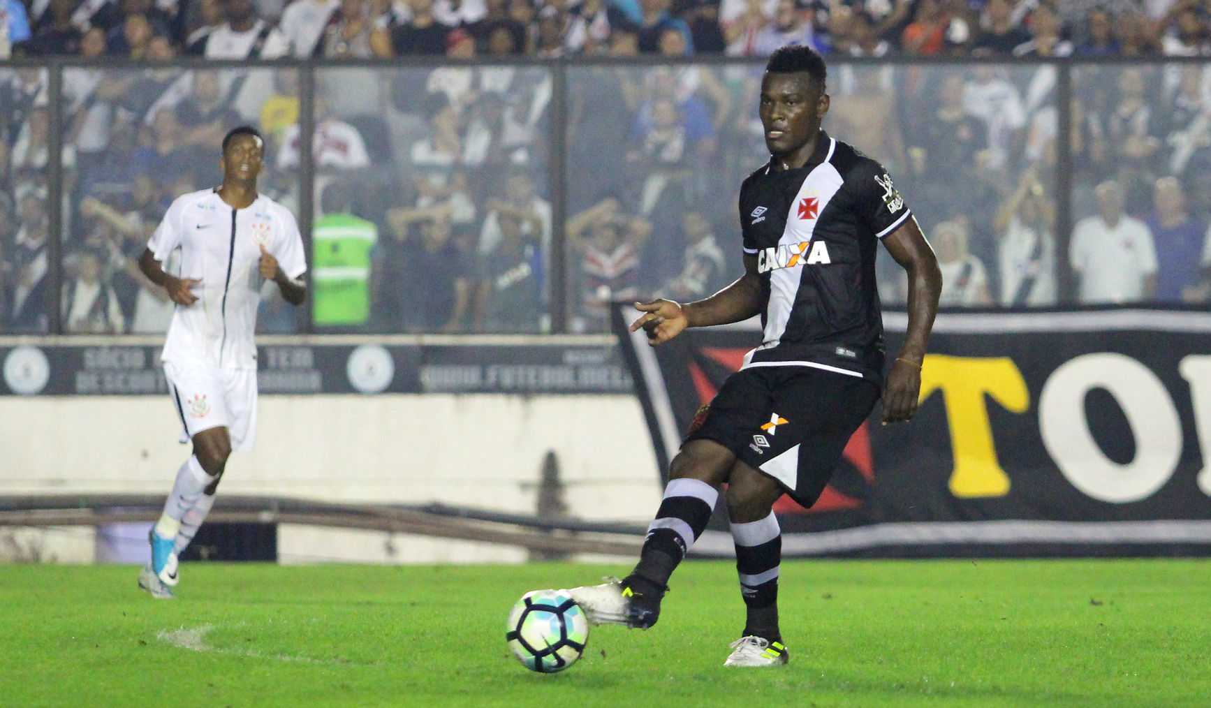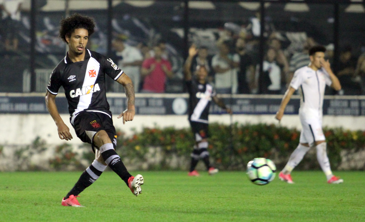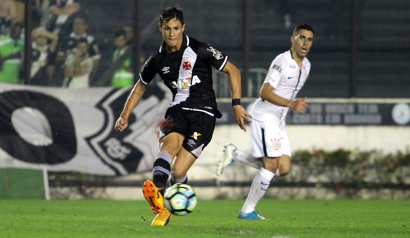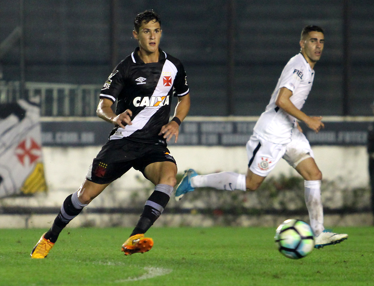 O jogo mal havia começado e o Vasco levou dois baques em sequência. Na primeira disputa de bola que teve, Kelvin caiu de mal jeito e torceu o joelho esquerdo, sendo substituído por Manga Escobar. Antes que o colombiano entrasse, porém, o Timão soube capitalizar a superioridade numérica: bela troca de passes, que começou com Jadson na direita e terminou com Guilherme Arana recebendo de Clayson. O lateral cruzou rasteiro e achou Marquinhos Gabriel livre para abrir o placar.