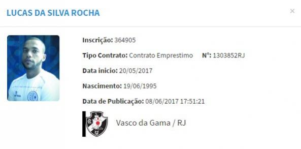 Vasco oficializou a contratação de Lucas Rocha. Nome do jogador apareceu novamente no BID. Regularizado para enfrentar o Sport. #gevas