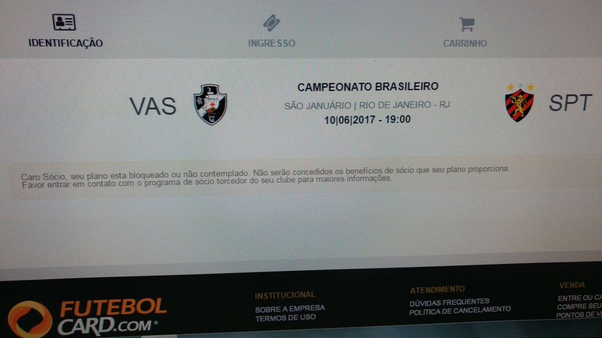 Segundo o Vasco, houve erro na integração do sistema com os estatutários, mas para o restante venda está normal. #gevas