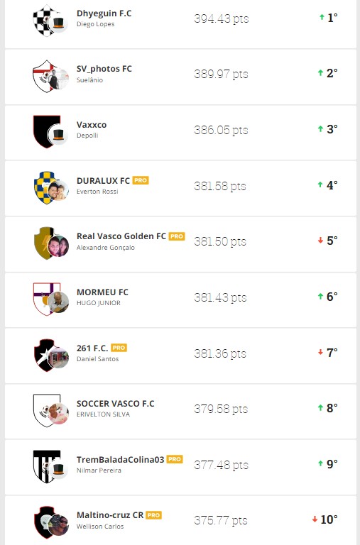 Fonte: NETVASCO (texto), Cartola FC (classificação)