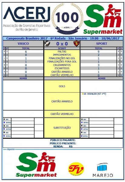 10/06/17 - Palpite NETVASCO: O resultado mais palpitado foi Vasco 2 x 0 Sport