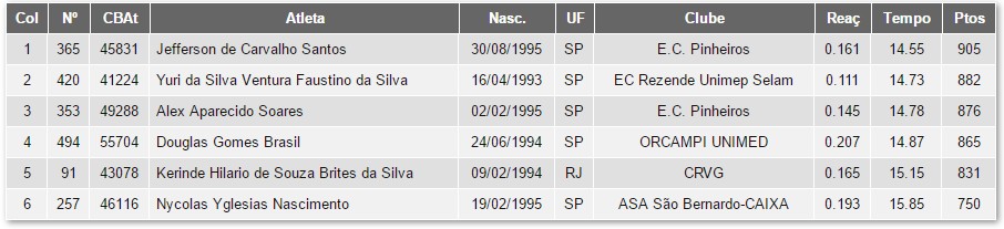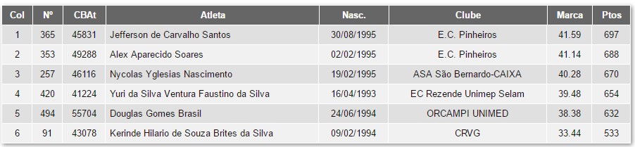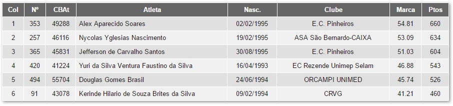 Decatlo - dia 10 de junho - Sábado - tarde - 14:00h