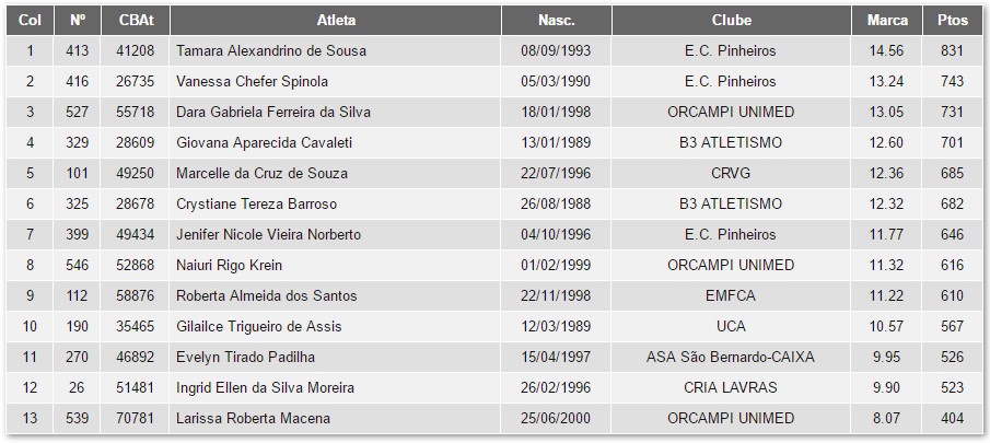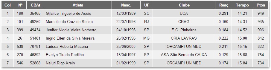 Heptatlo - dia 10 de junho - Sábado - tarde - 14:05h