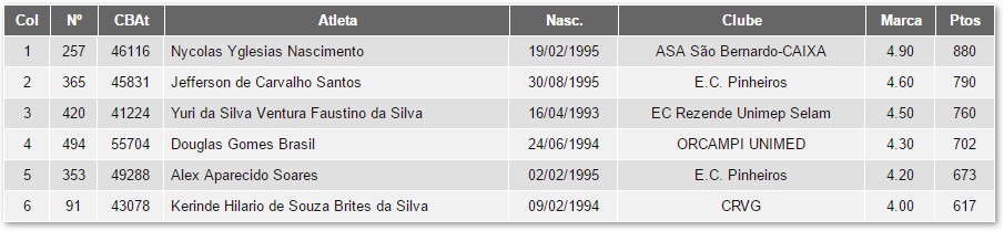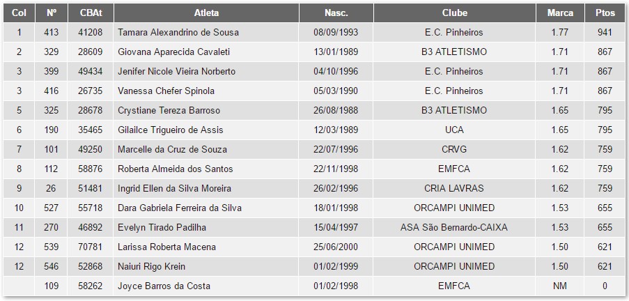 Heptatlo - dia 10 de junho - Sábado - manhã - 09:35h