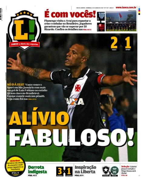 Confira como a imprensa carioca destacou a vitória do Vasco sobre o Sport
