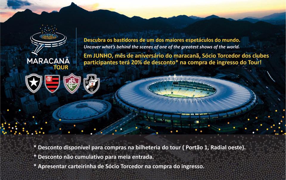 👉🏽Sócios torcedores dos quatro times grandes do Rio terão desconto de 20% ao fazer o Tour Maracanã.