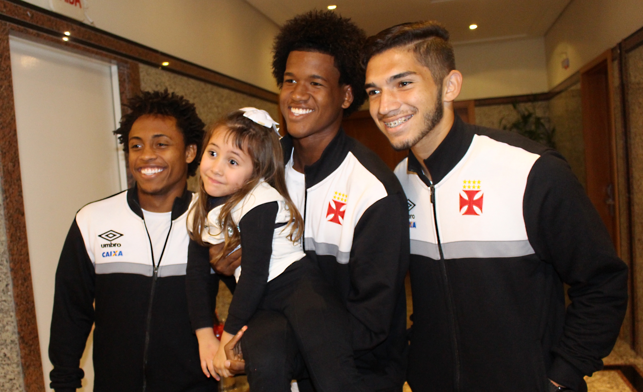 Os sócios-torcedores Diego Felquilquer, Luciano Vaz e Marcelo Markus Teixeira, além da pequena Maria Júlia, afilhada do sócio Fábio de Araújo, resgataram uma experiência no Clube de Vantagens e tiveram a chance de visitar o hotel onde a delegação vascaína está hospedada em Chapecó. Os Gigantes foram recebidos pelo treinador Milton Mendes, receberam o carinho dos jogadores e ganharam ingressos para o jogo desta quarta (14).