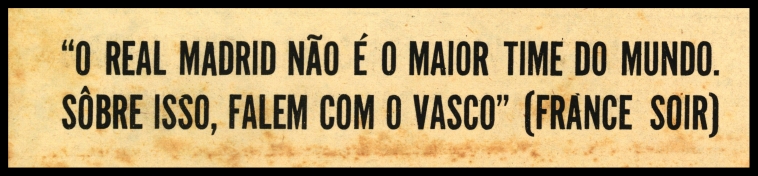 No campo e no braço, o poderoso Real Madrid, bicampeão europeu, nada pode fazer contra o Club de Regatas Vasco da Gama, o único Campeão da América (1948). O Gigante da Colina sobrepujou aquele que era visto como o melhor time do mundo. Mas, em 1957, se pudéssemos apontar um clube Campeão do Mundo, nenhum outro teria tanta legitimidade e propriedade quanto o nosso Vasco.