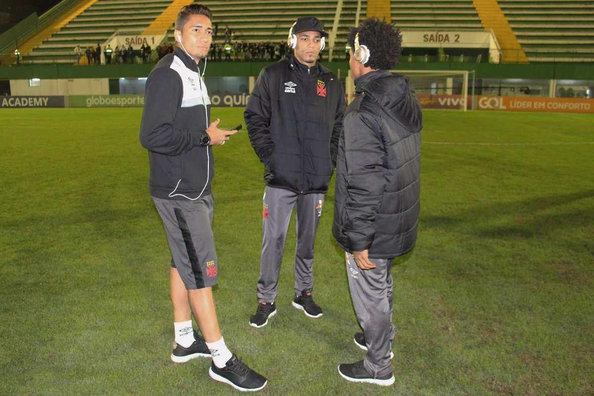 Elenco do Vasco já está na Arena Condá e faz o reconhecimento do gramado; veja foto