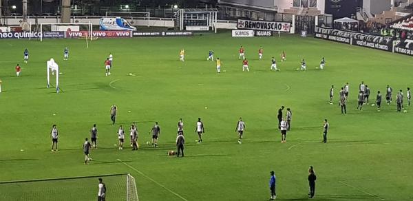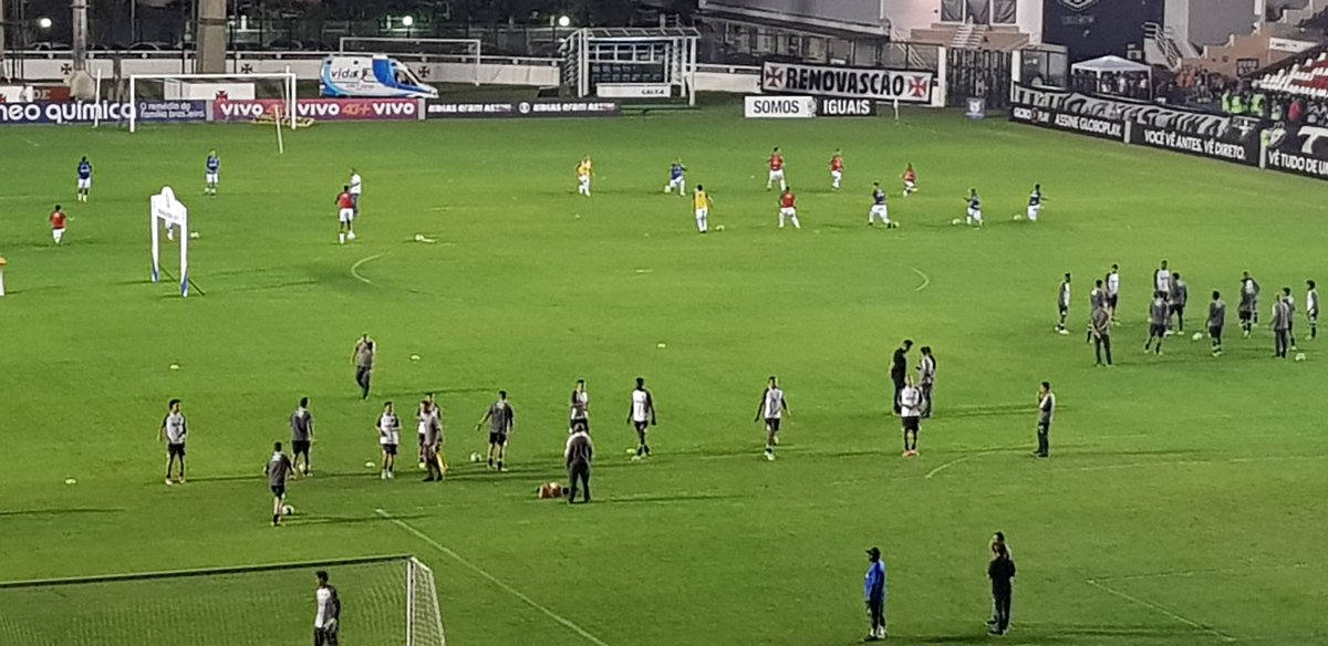 Jogadores de Vasco e Avaí se aquecem neste momento em São Januário; veja foto