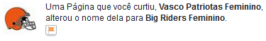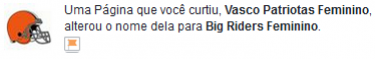 O Vasco Patriotas Feminino, time de futebol americano, mudou de nome para Big Riders Feminino.