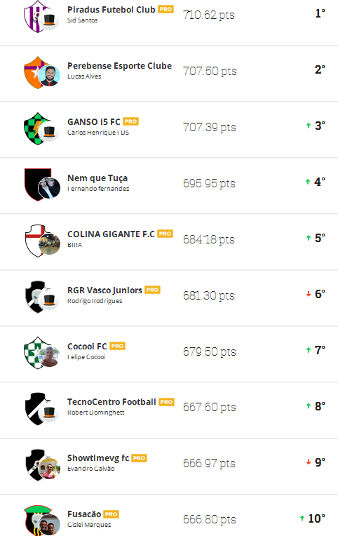 13/06/17 - Cartola FC: Confira a classificação da Liga NETVASCO após a 6ª rodada