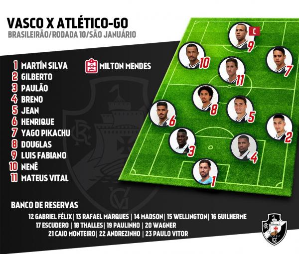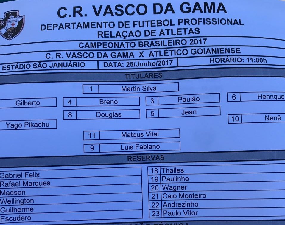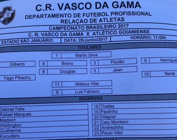 Confira a escalação do Vasco; Paulinho é a novidade no banco