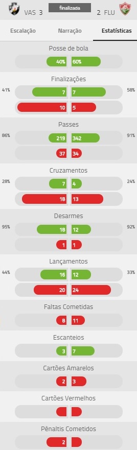 Confira estatísticas de Vasco 3 x 2 Fluminense