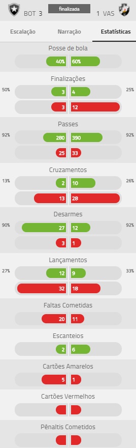 Confira estatísticas de Botafogo 3 x 1 Vasco